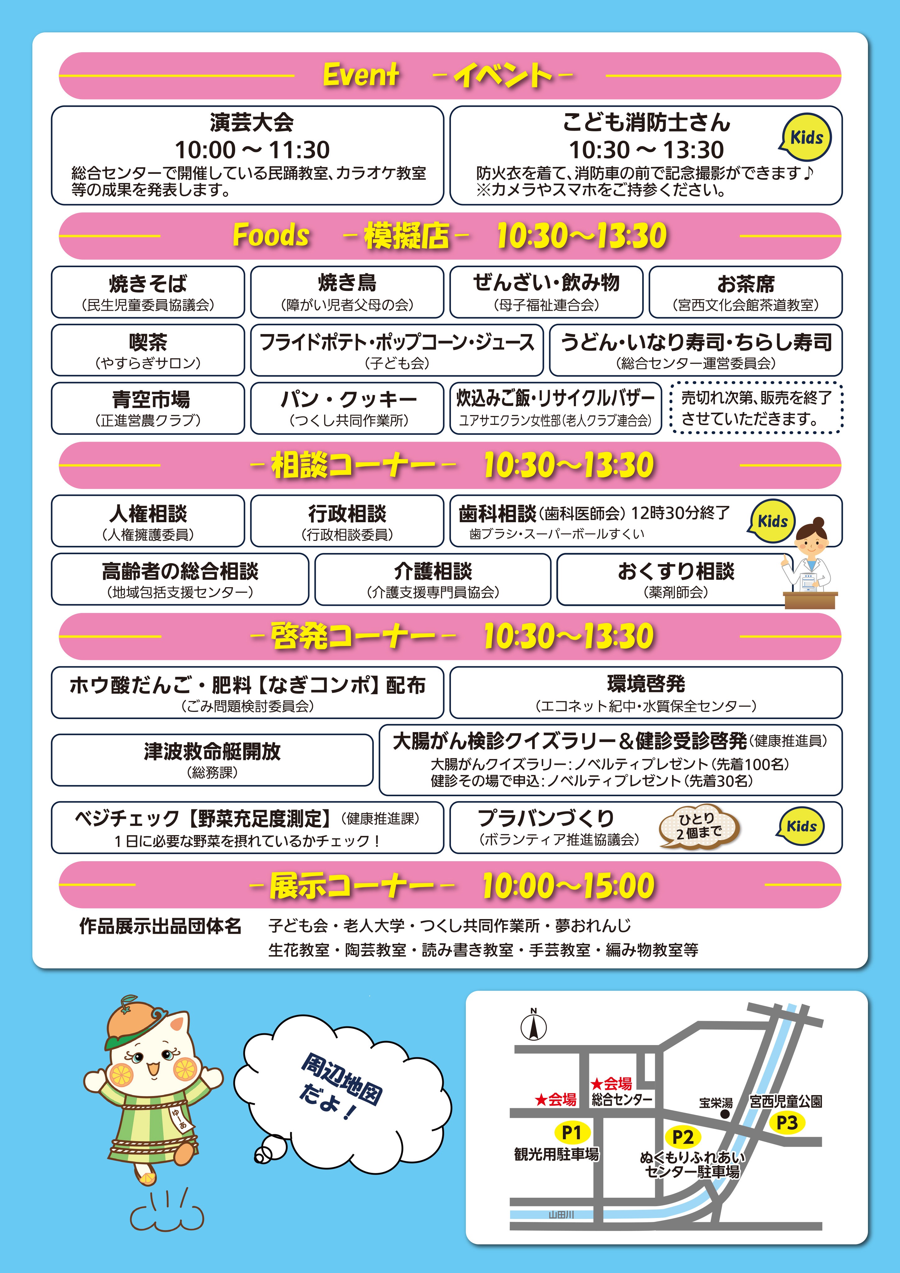 ・人権相談、行政相談、歯科相談(12時30分終了)【kids】、高齢者の総合相談、介護相談等